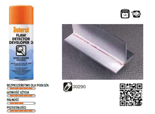 Poprawia i uwidacznia każdy ślad penetranta po nałożeniu i pozostawieniu na co najmniej 7 minut. Do zmycia z kontrolowanego obszaru można użyć Flaw Detector Cleaner.