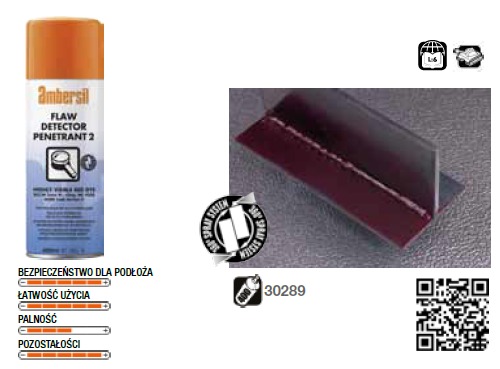 Czerwony penetrant, zmywalny wodą, do nieniszczących badań powierzchni metalowych. Penetrant wnika w drobne wady w ciągu 10 minut. Nadmiar penetranta należy usunąć przed użyciem wywoływacza.
