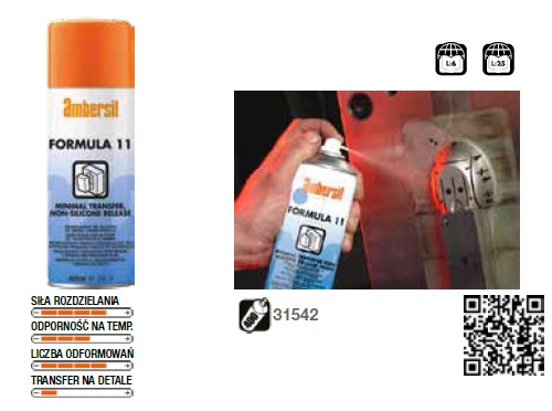 Polecany dla „elektronicznej” klasy polimerów. Bezsilikonowy środek rozdzielający tworzący bardzo cienką, suchą powłokę doskonałą w przypadku polimerów takich jak poliwęglan, ABS, i HIPS (High Impact Styrene) (high impact styrene).
