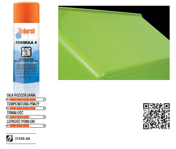 - Bezsilikonowy środek rozdzielający tworzący mokrą powłokę, zapewniający wysoki połysk wyprasek