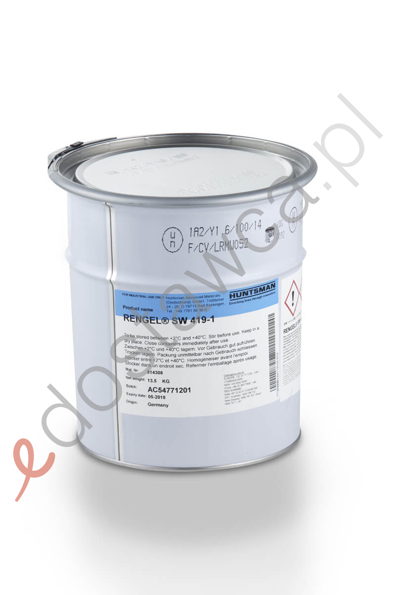 Rengel SW 419-1 powinien być zawsze dokładnie wymieszany przed dodaniem utwardzacza HV2419, ponieważ przy długim składowaniu może nastąpić lekkie osadzanie wypełniacza. Odważyć żądane ilości składników do czystego pojemnika. Mieszać do